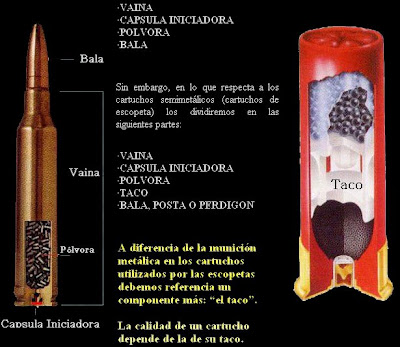 A la mayoría de cartuchos actuales, a excepción de los semimetálicos, los podemos dividir en cuatro partes o componentes: